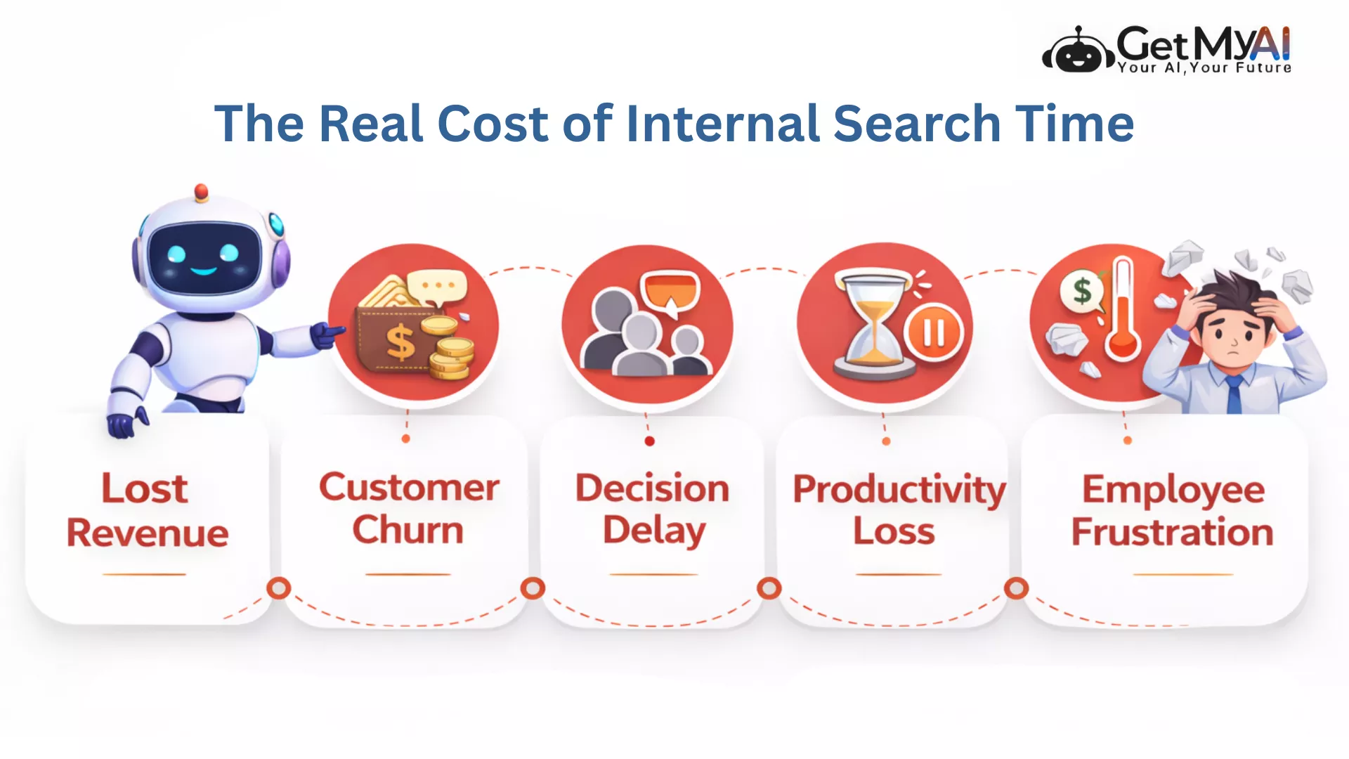 Yet very few measure how much time their organization loses simply trying to find information. Internal knowledge loss is rarely visible on a balance sheet. It does not show up as a line item. It does not trigger a budget alert. But it quietly erodes momentum across every department. Employees spend an average of 1.8 hours per day searching for information. That equals roughly 450 hours per year per employee. Nearly a quarter of the workweek.