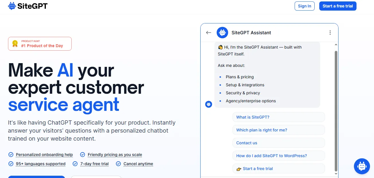 SiteGPT is focused on speed and simplicity. It allows teams to turn existing website content into a chatbot with minimal setup.