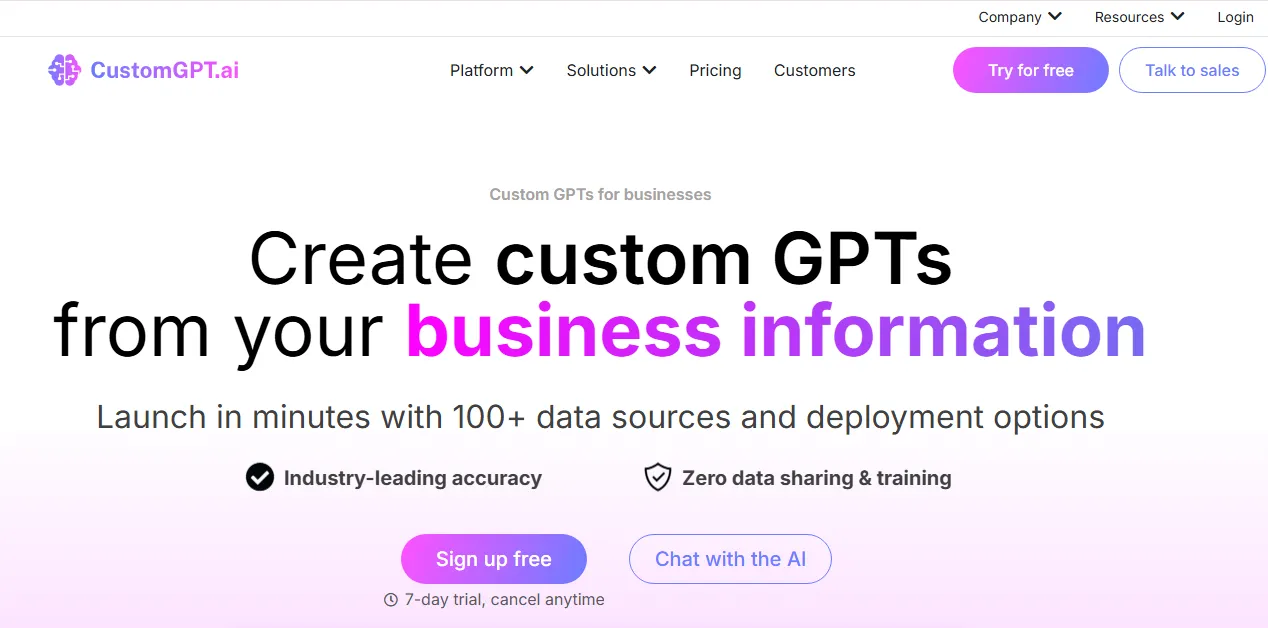 CustomGPT is designed for teams that require strict control over information. It delivers answers based only on verified source material, which helps maintain accuracy and compliance in regulated settings.
