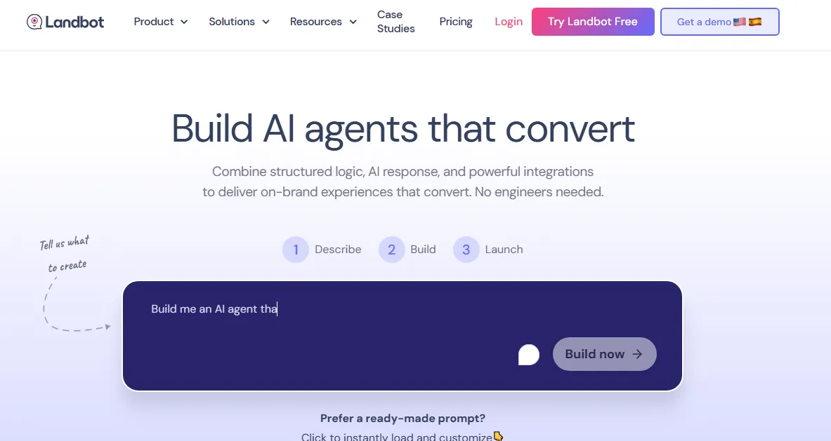 Landbot's core functionality is visual conversation design, which simplifies the process of creating organized flows for lead capture and campaign for non-technical teams.